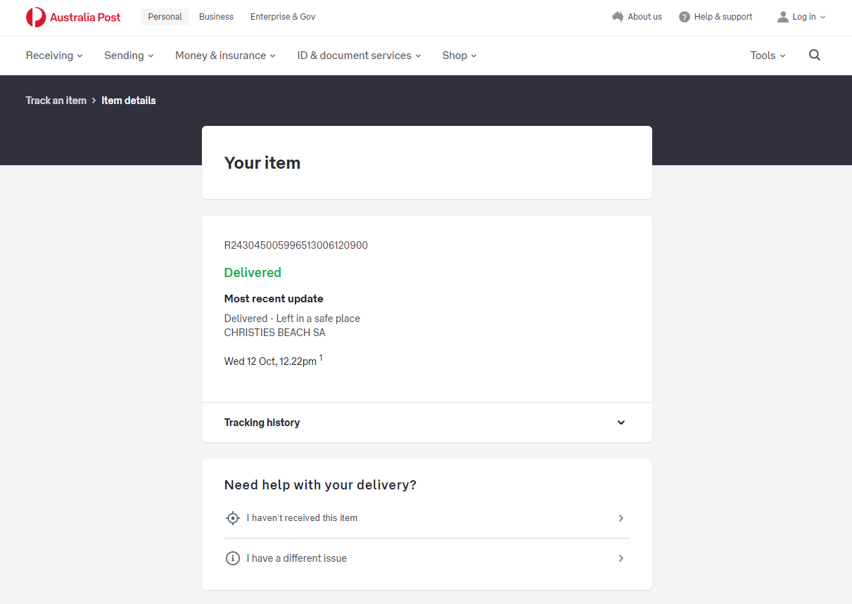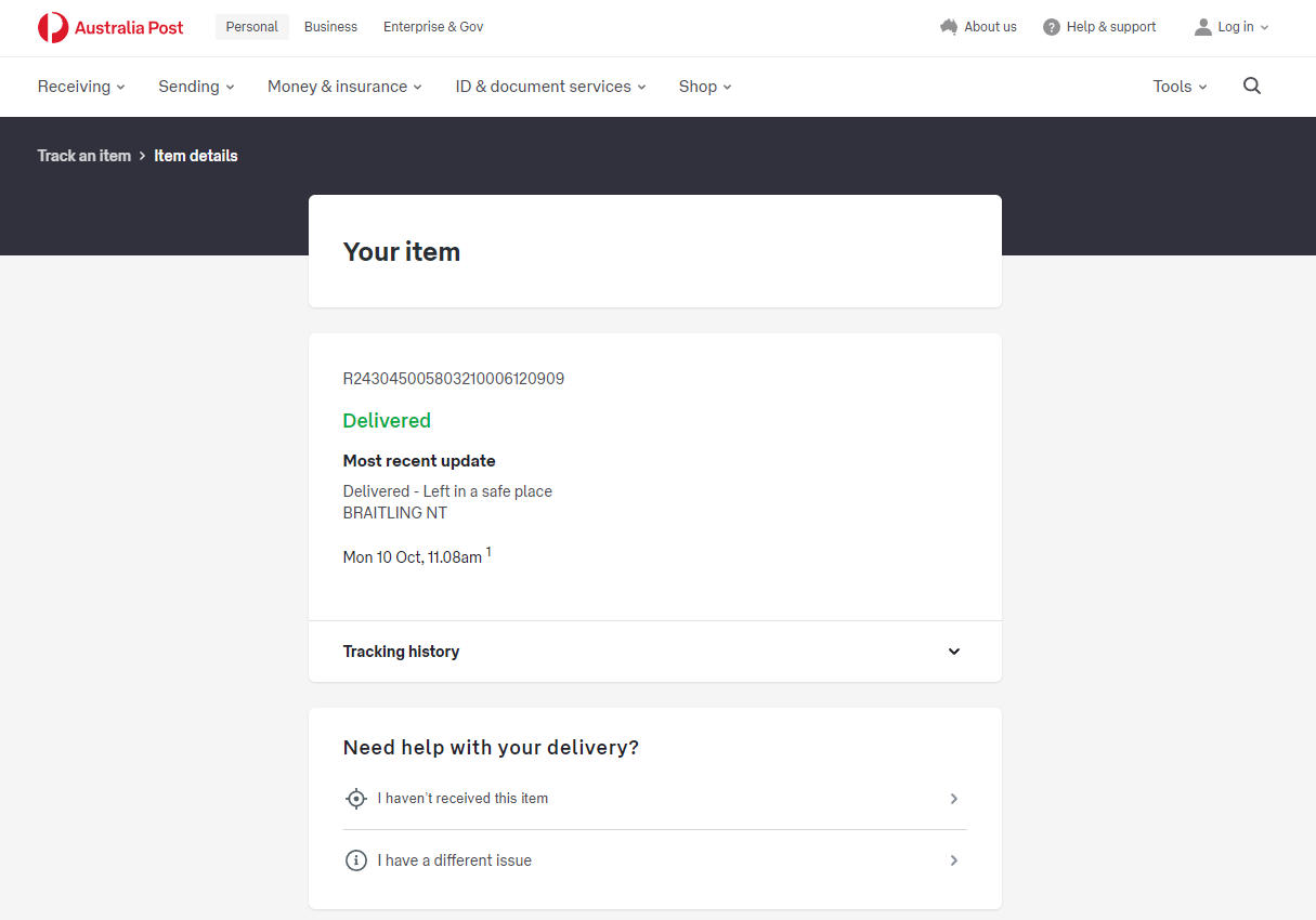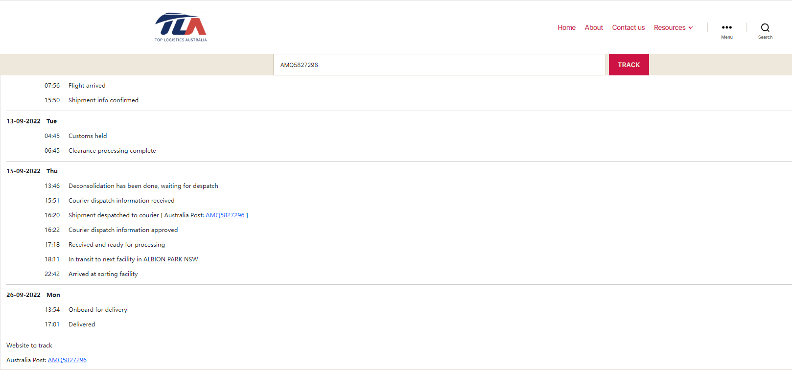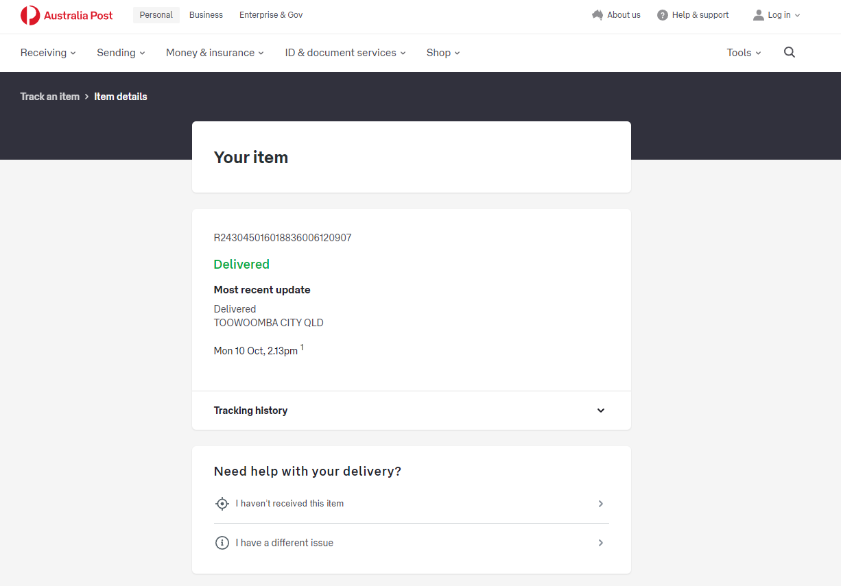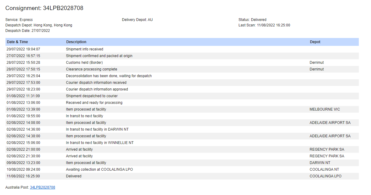 Please check your tracking number on the Australia Post website(To protect customer privacy, only part of the logistics records are shown)