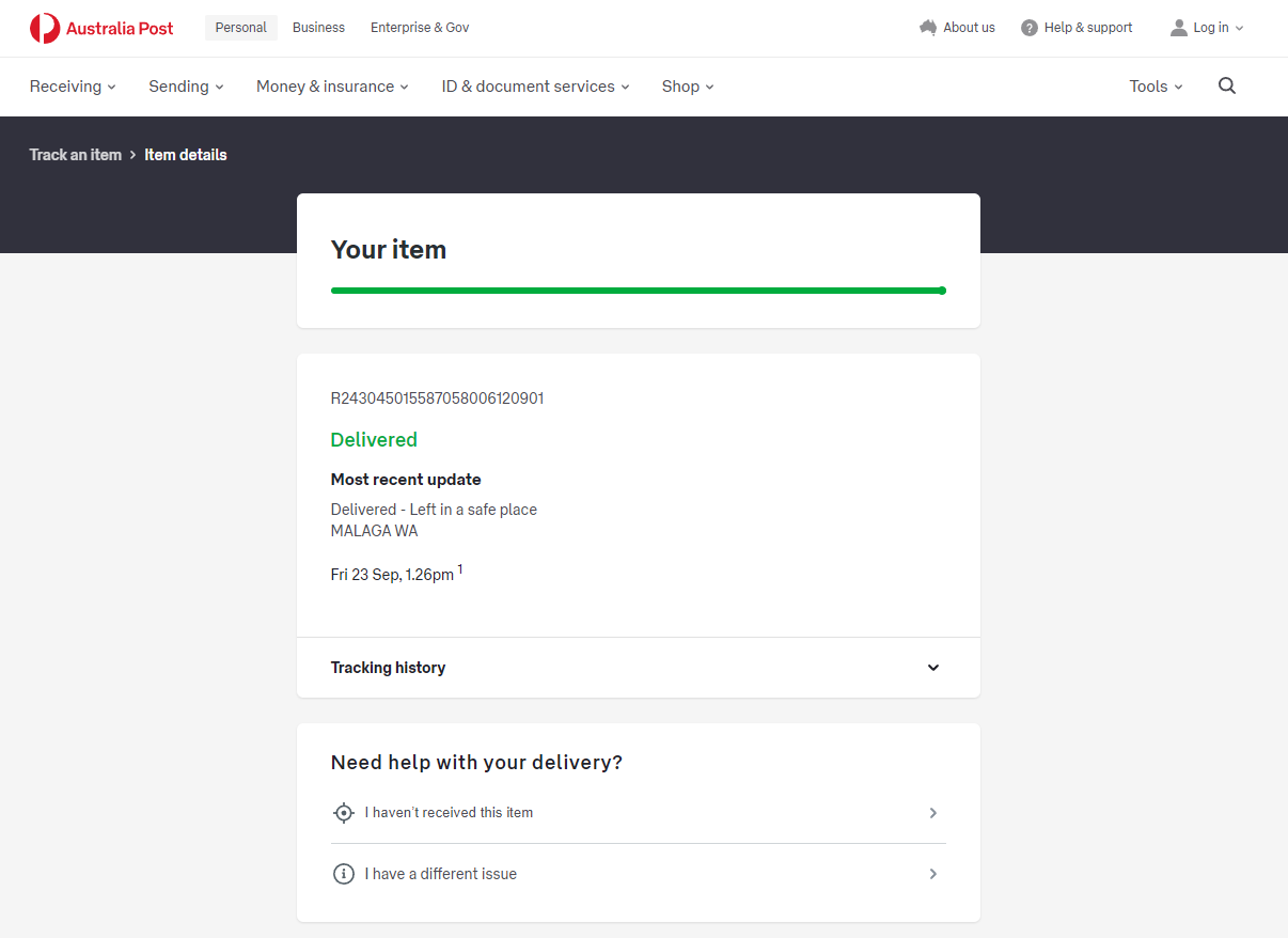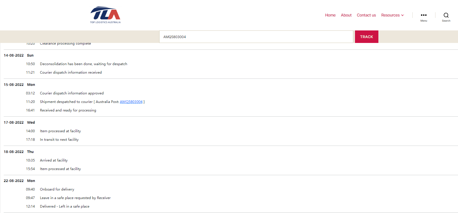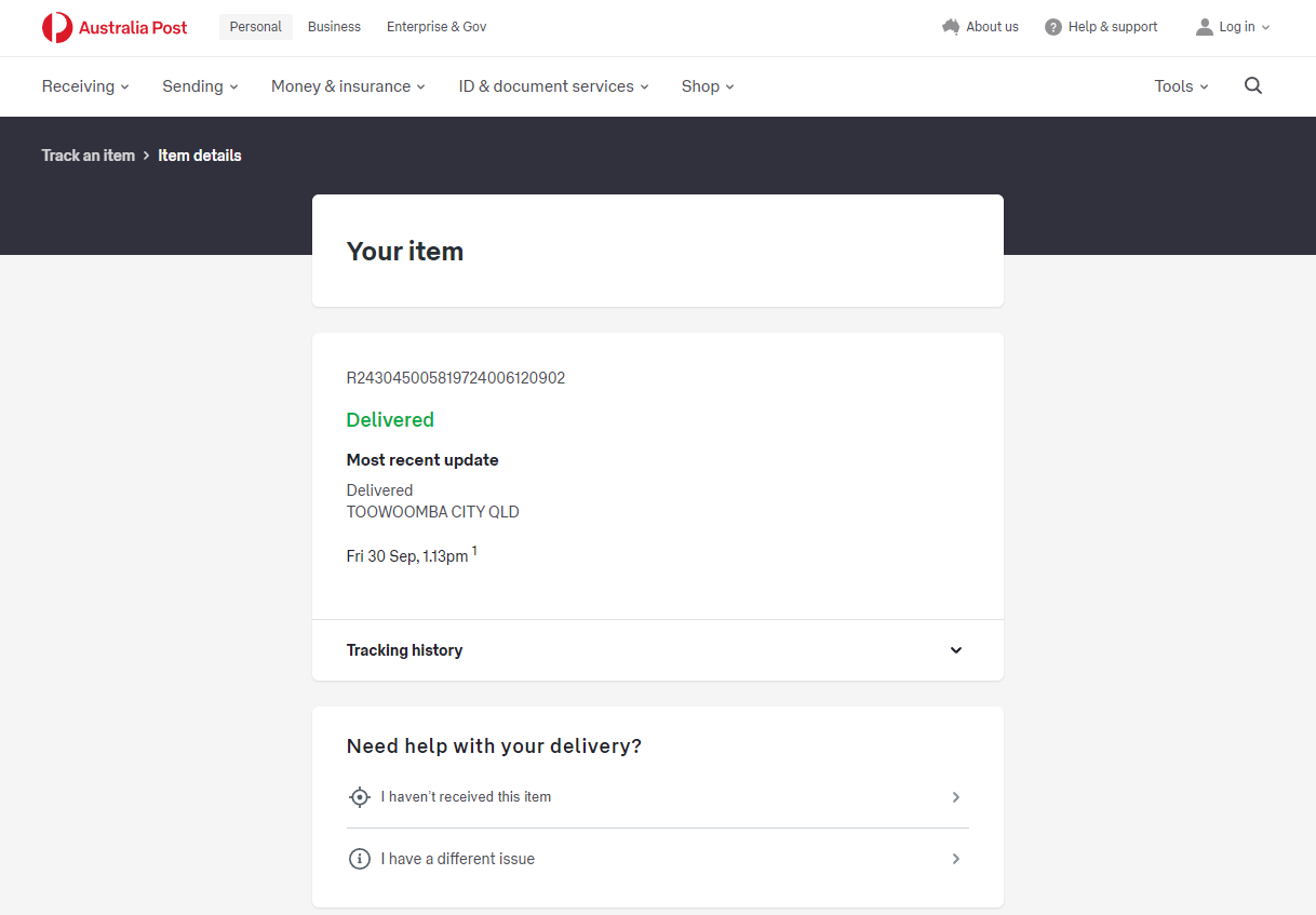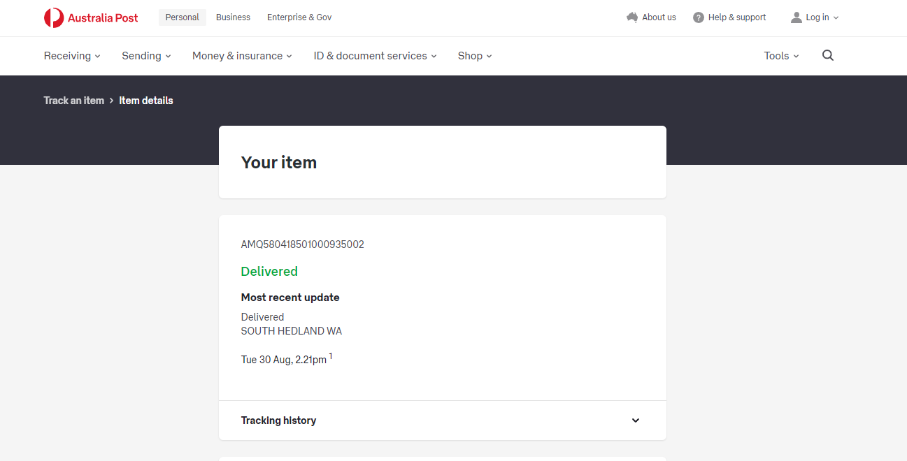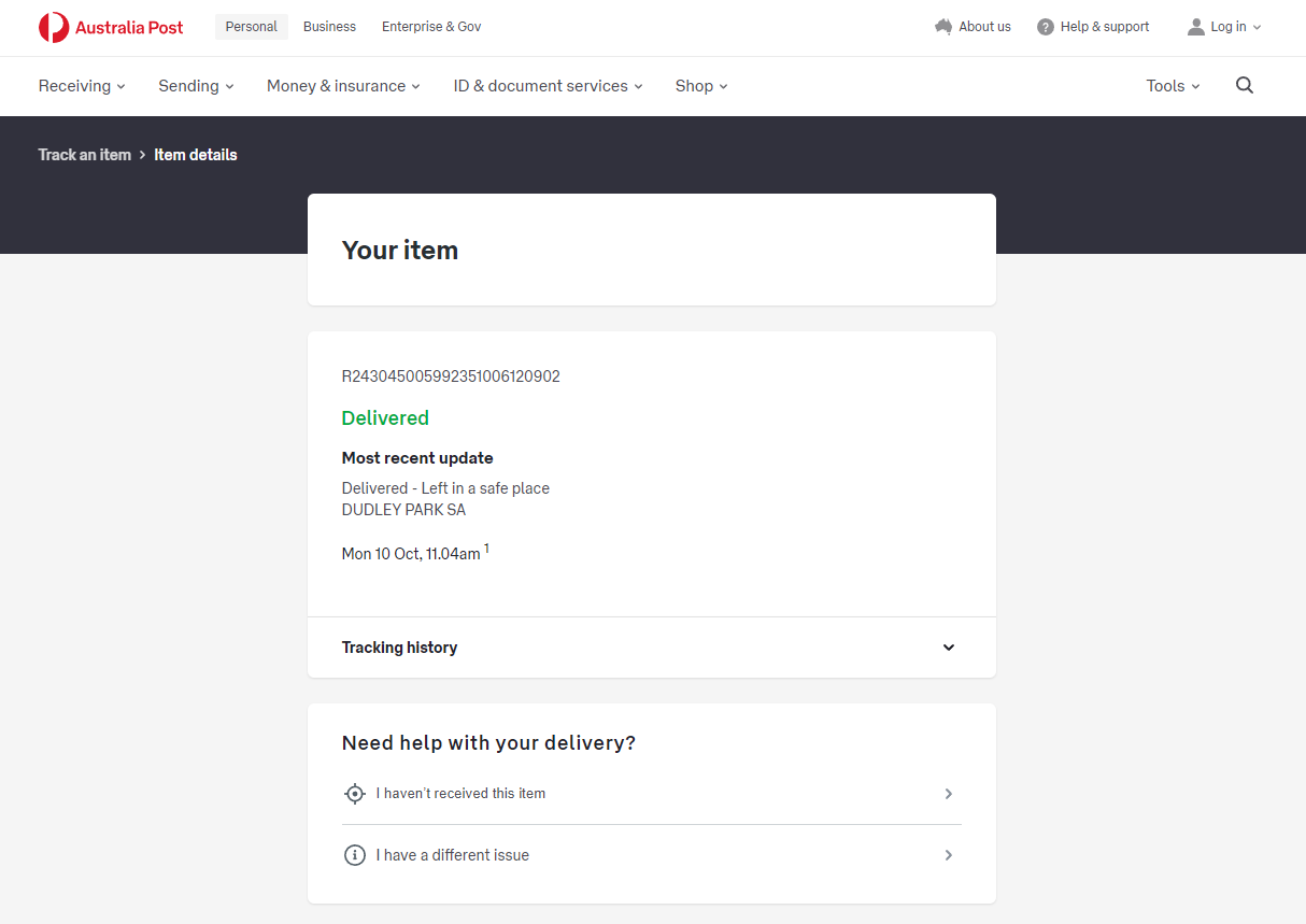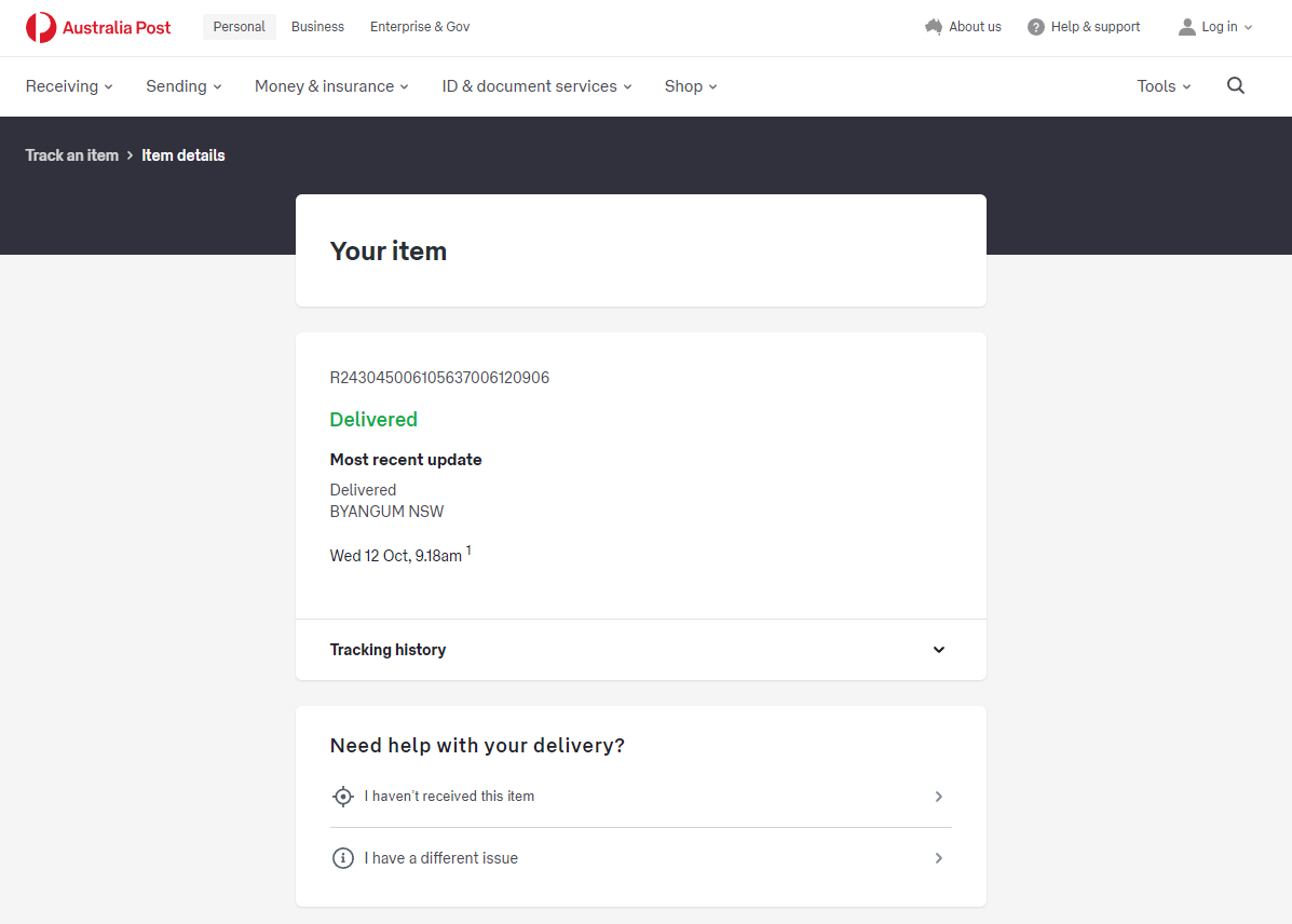 Please check your tracking number on the Australia Post website(To protect customer privacy, only part of the logistics records are shown)