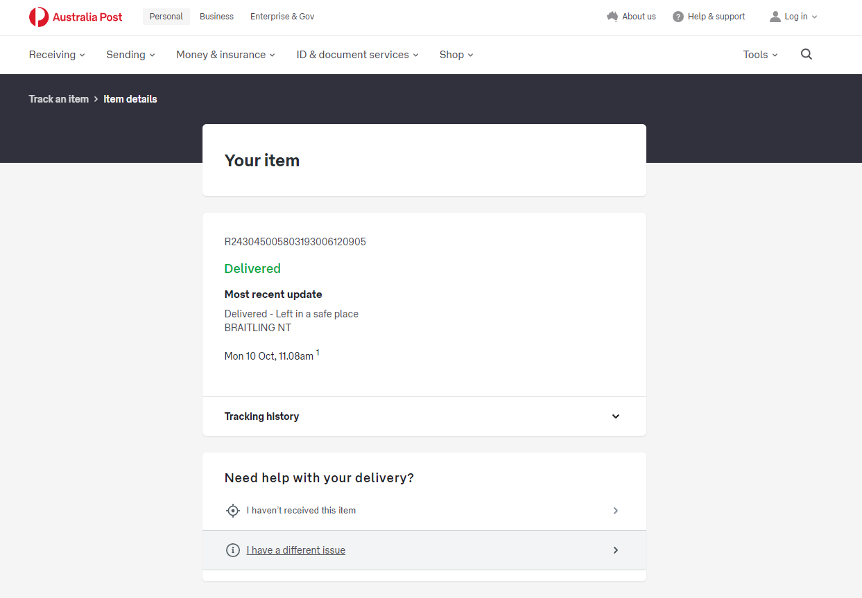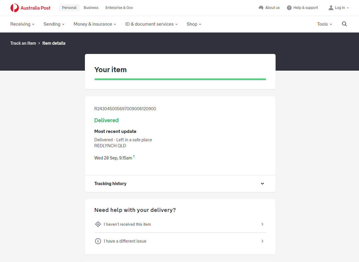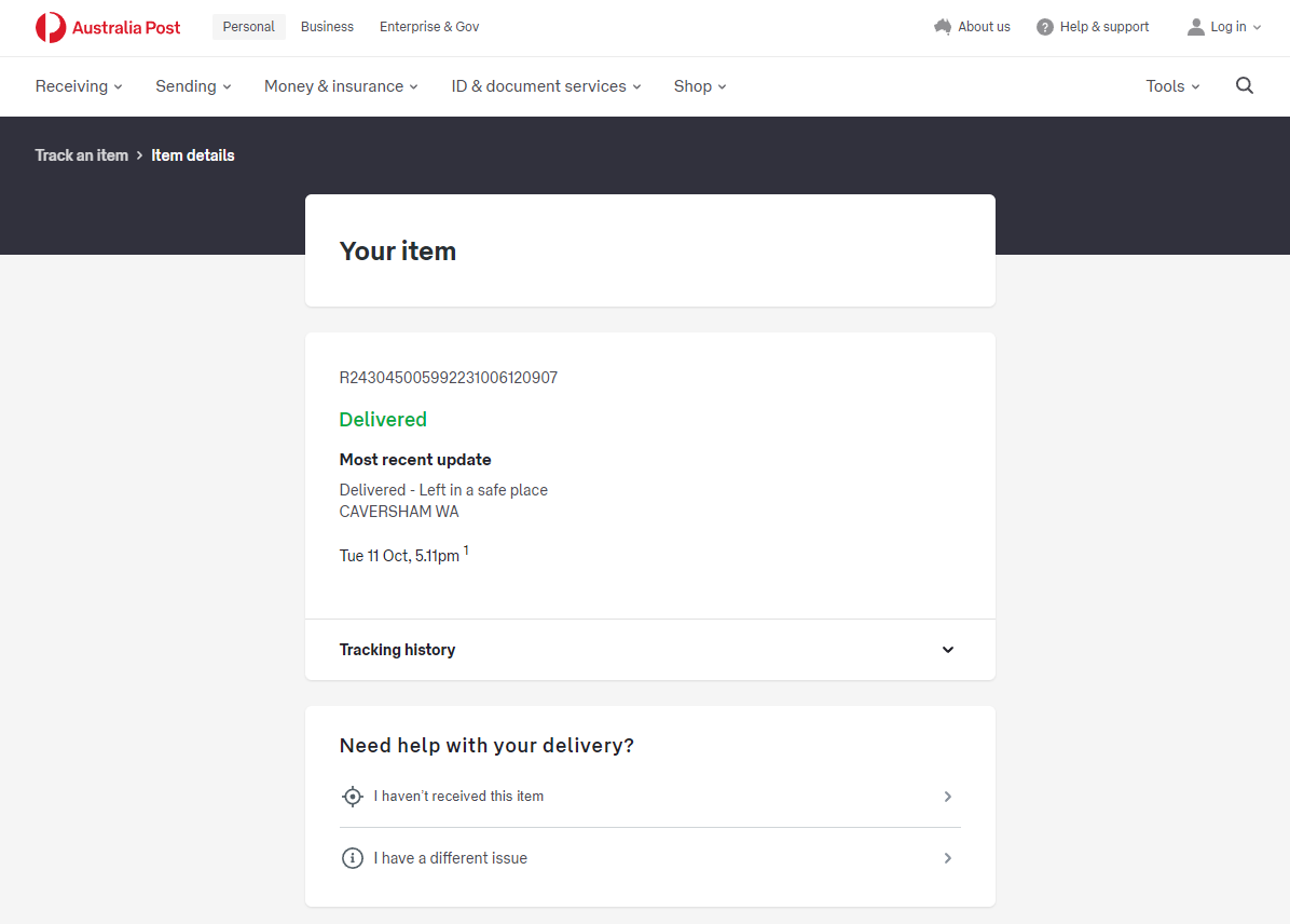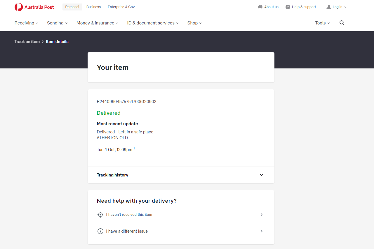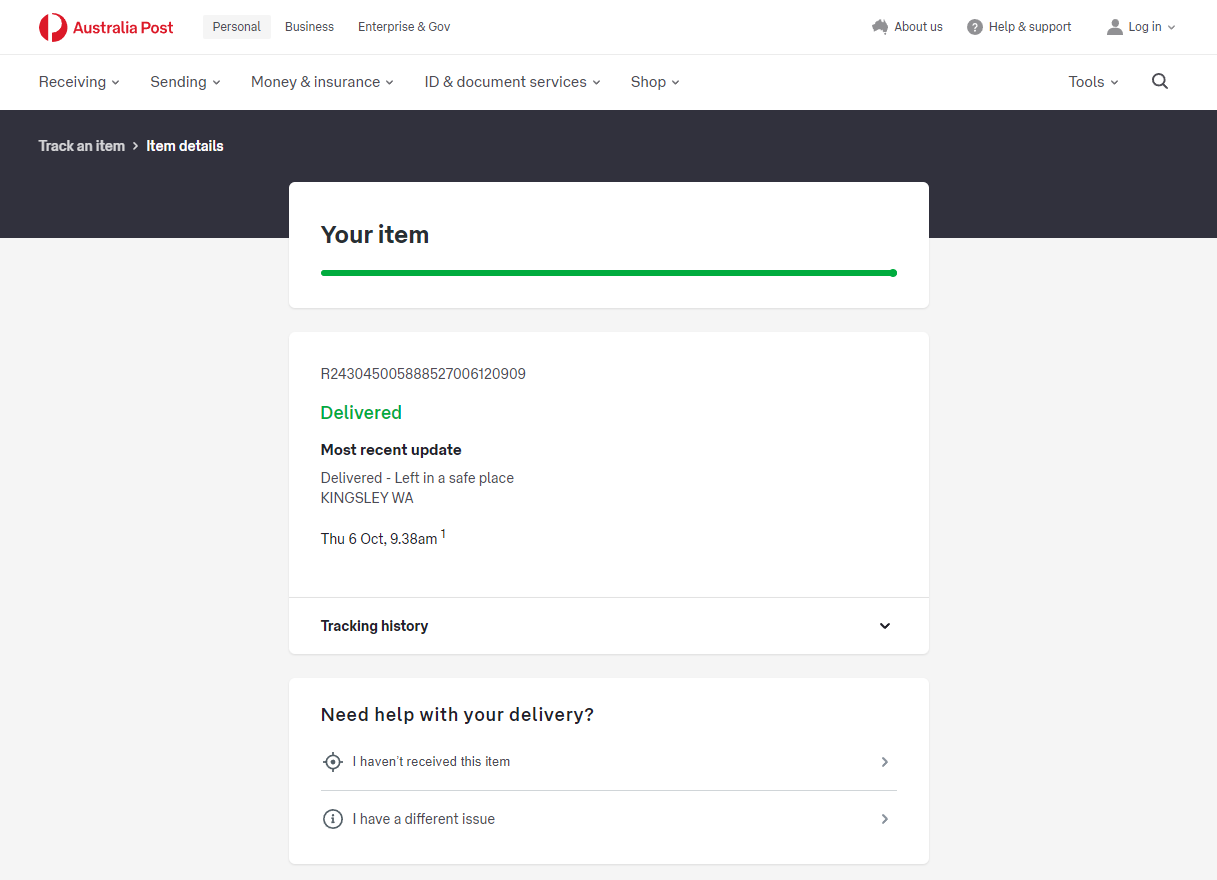 Please check your tracking number on the Australia Post website(To protect customer privacy, only part of the logistics records are shown)