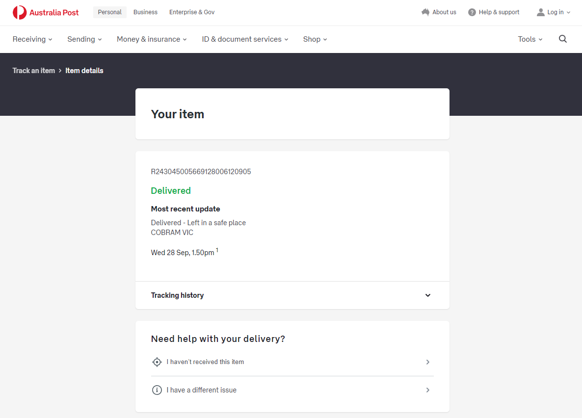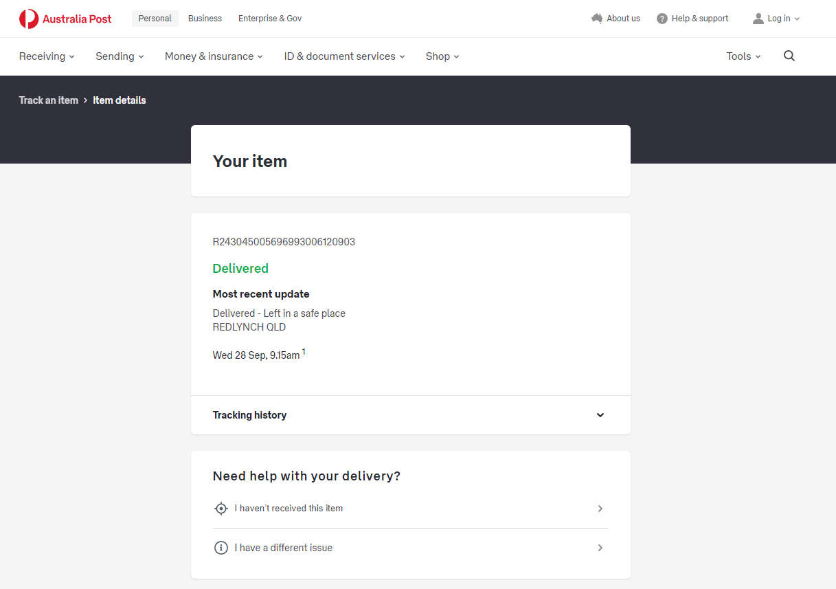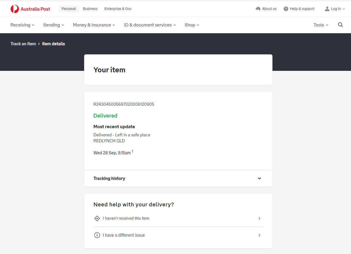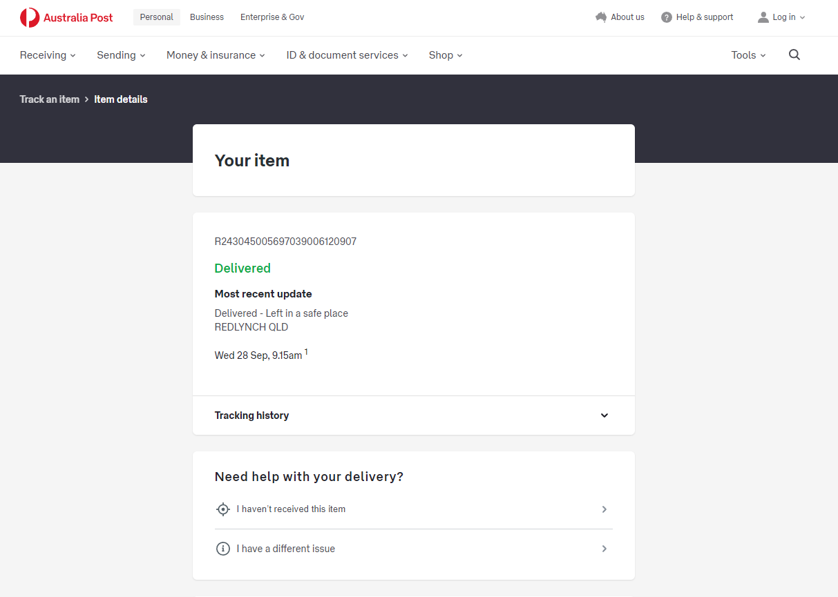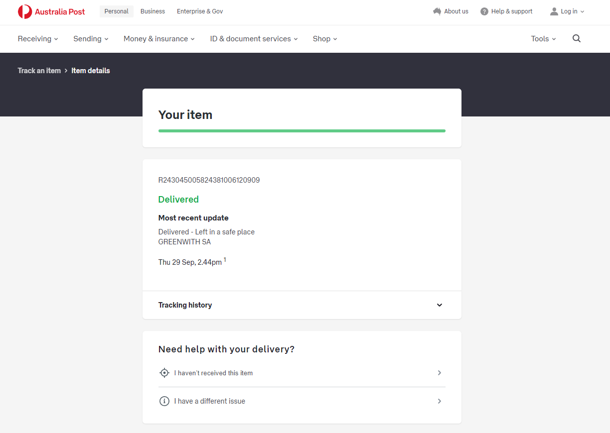 Please check your tracking number on the Australia Post website(To protect customer privacy, only part of the logistics records are shown)