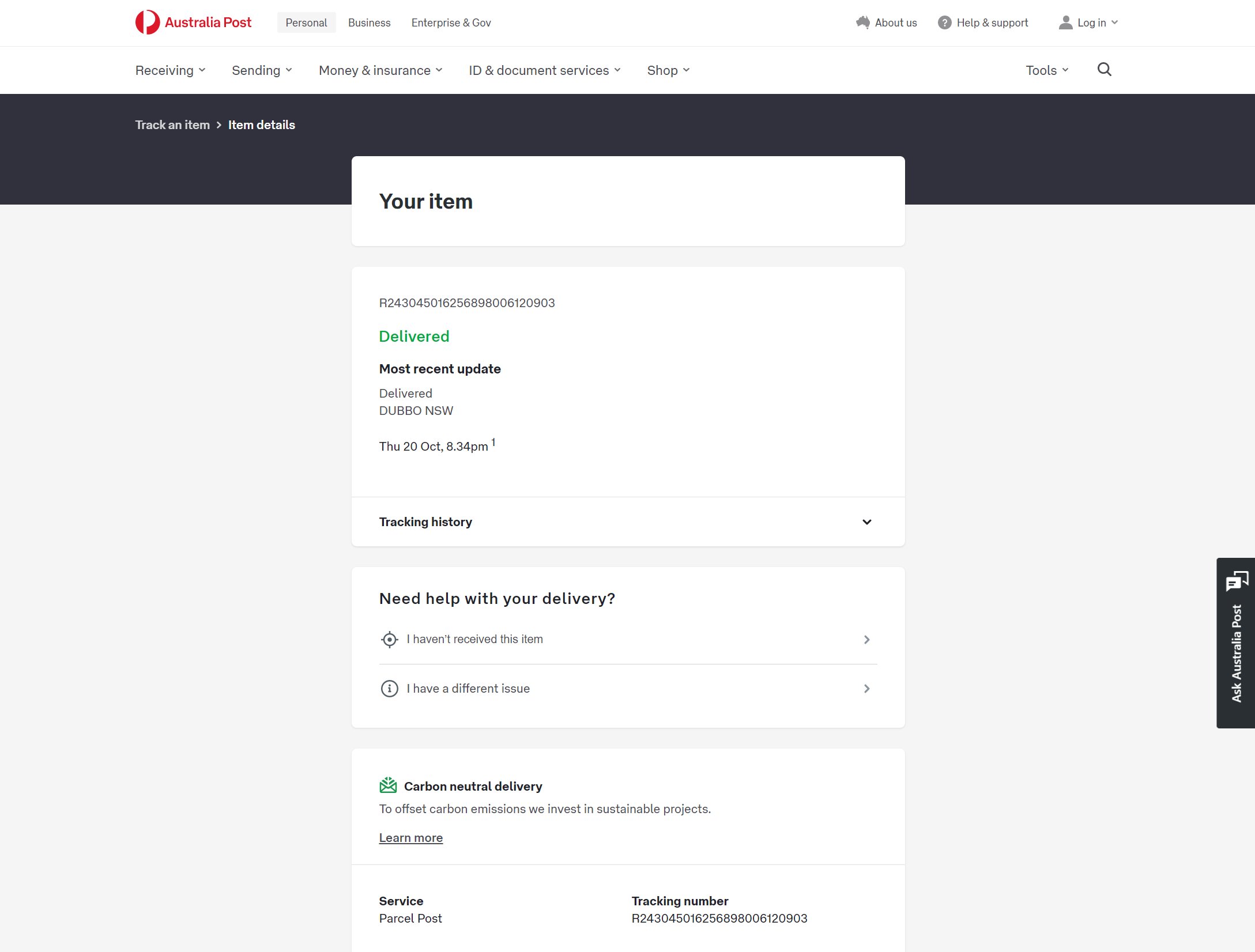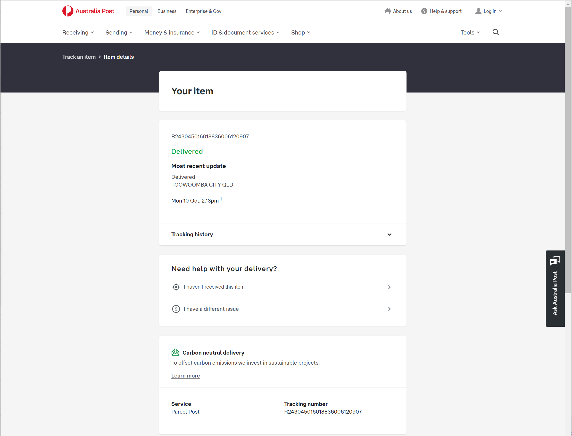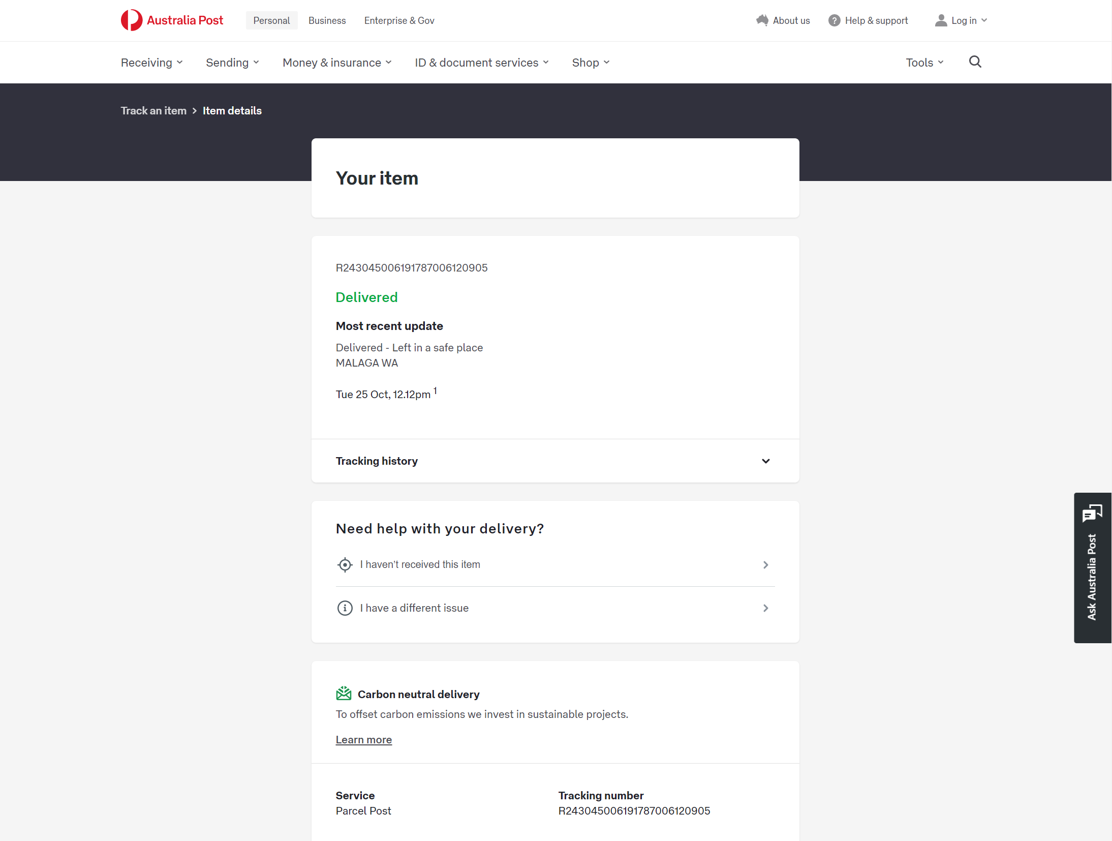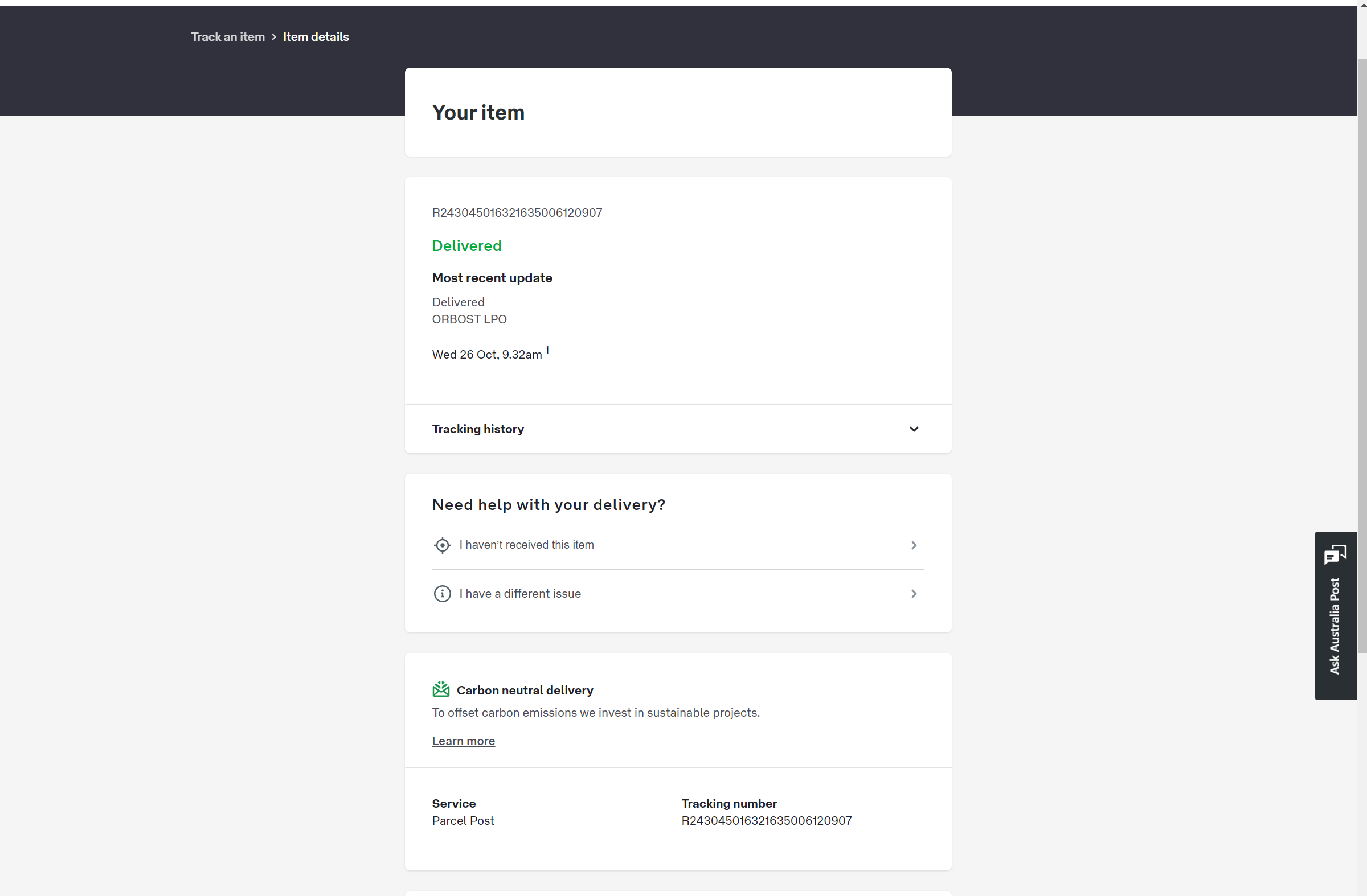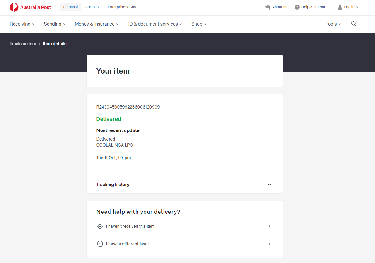 Please check your tracking number on the Australia Post website(To protect customer privacy, only part of the logistics records are shown)