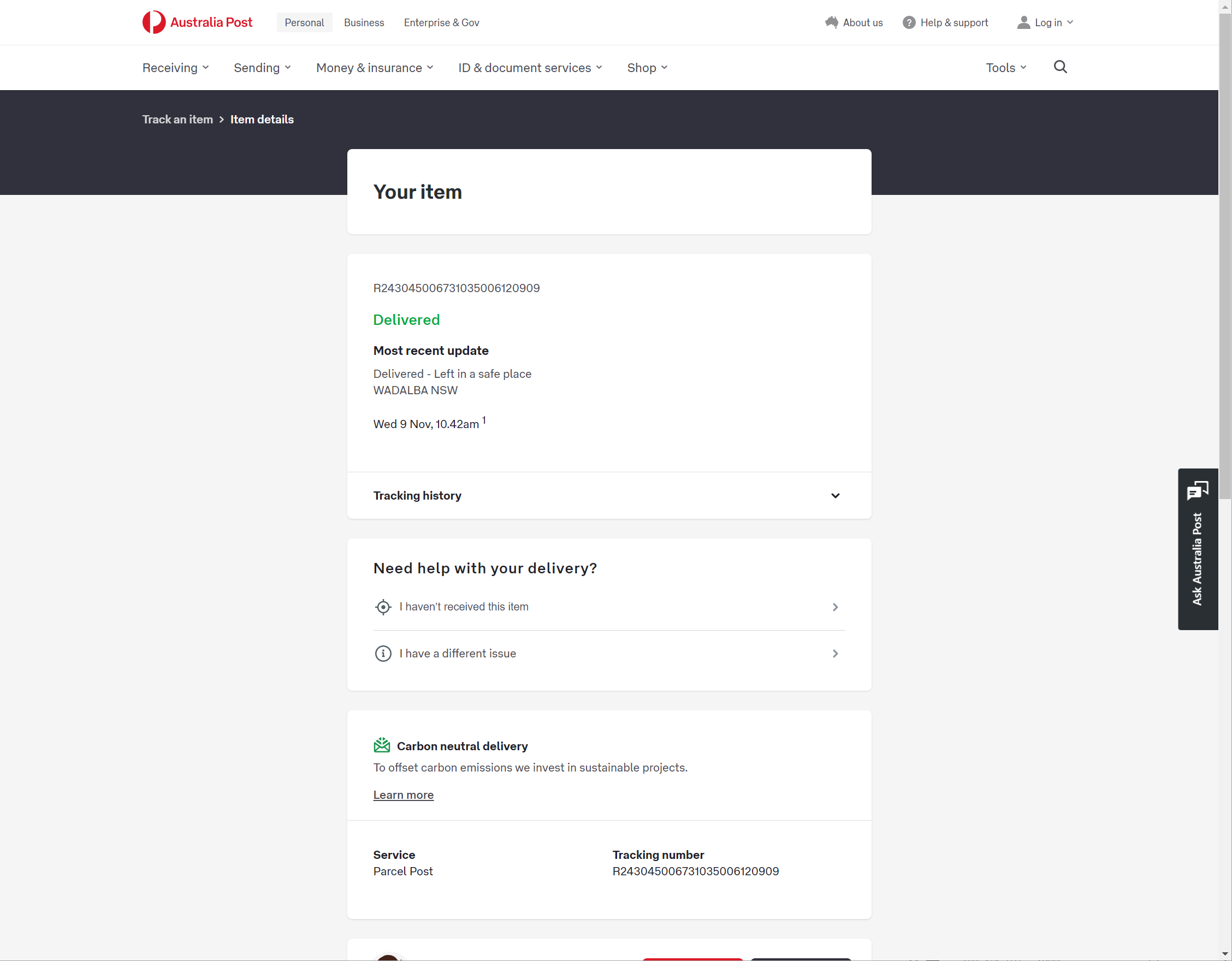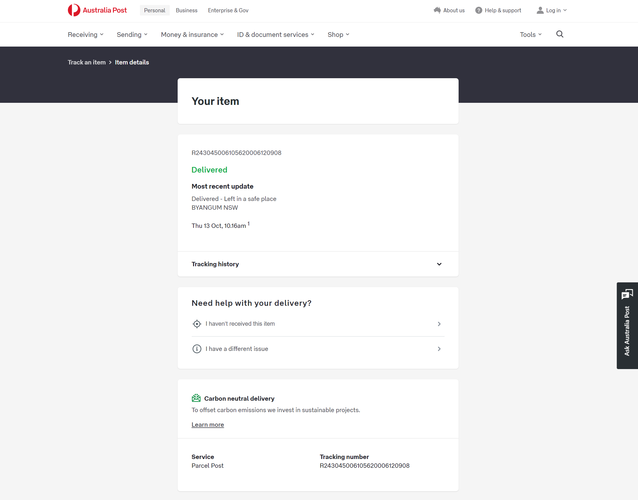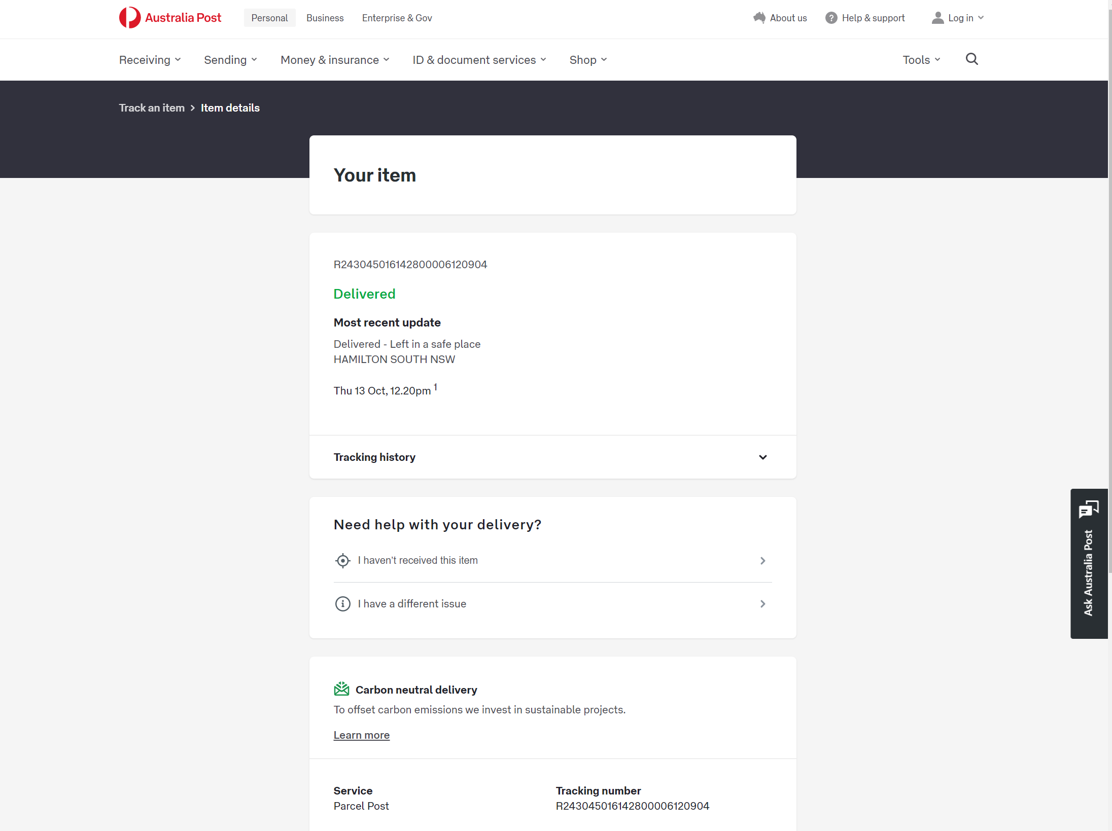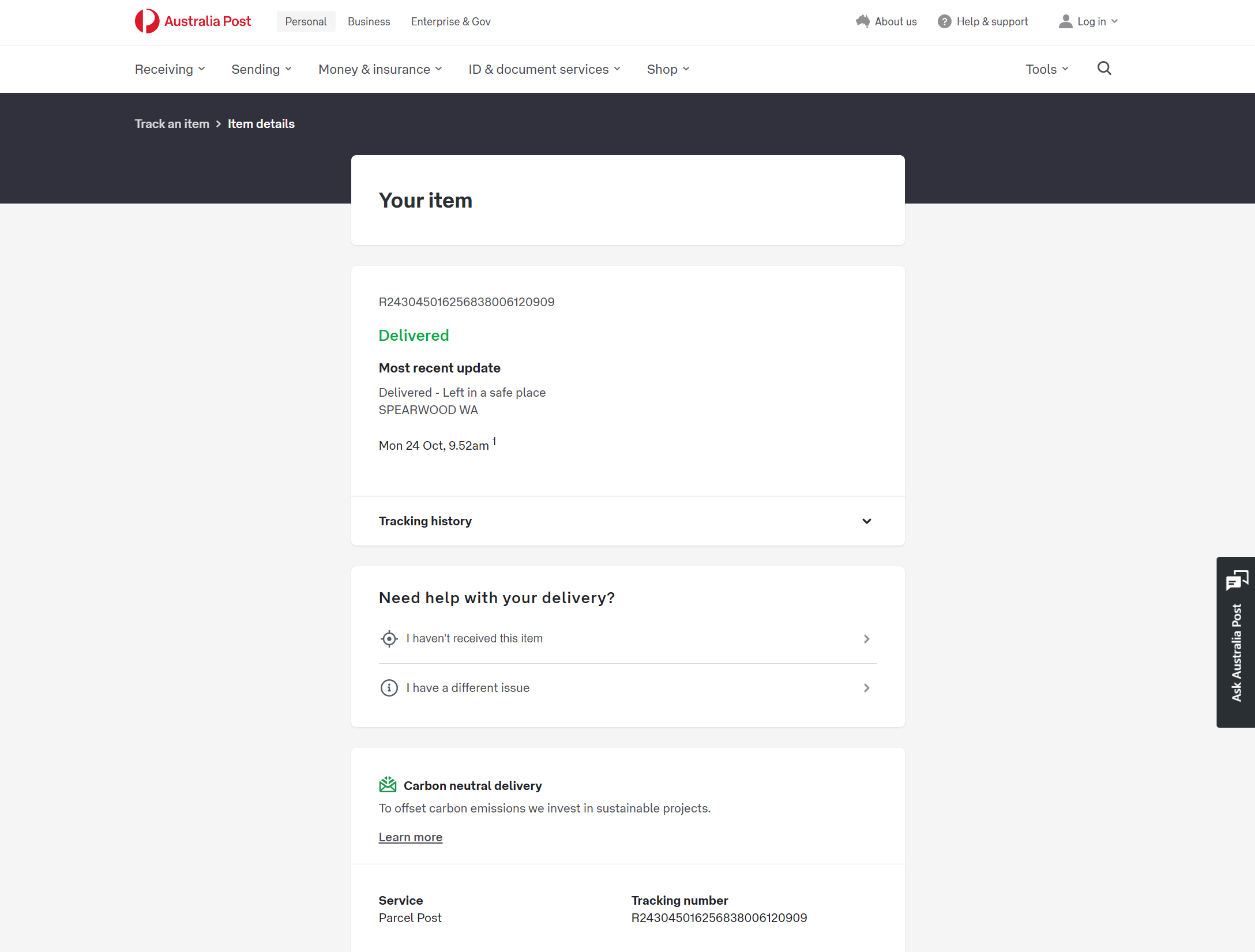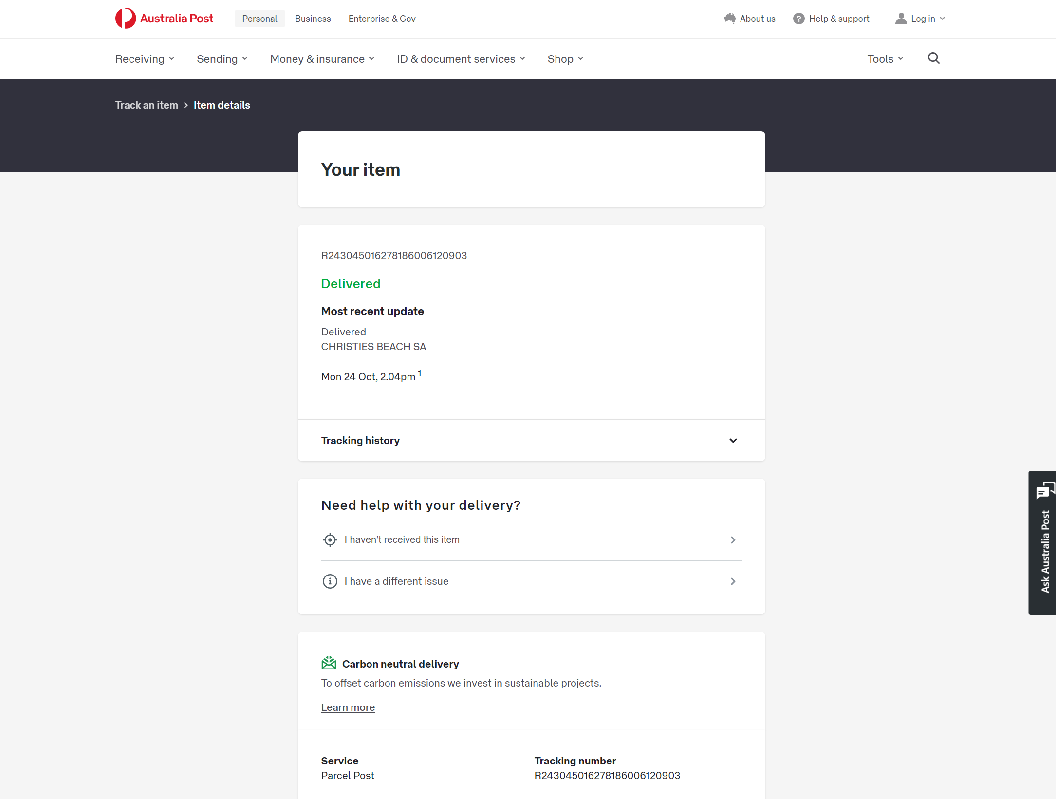 Please check your tracking number on the Australia Post website(To protect customer privacy, only part of the logistics records are shown)