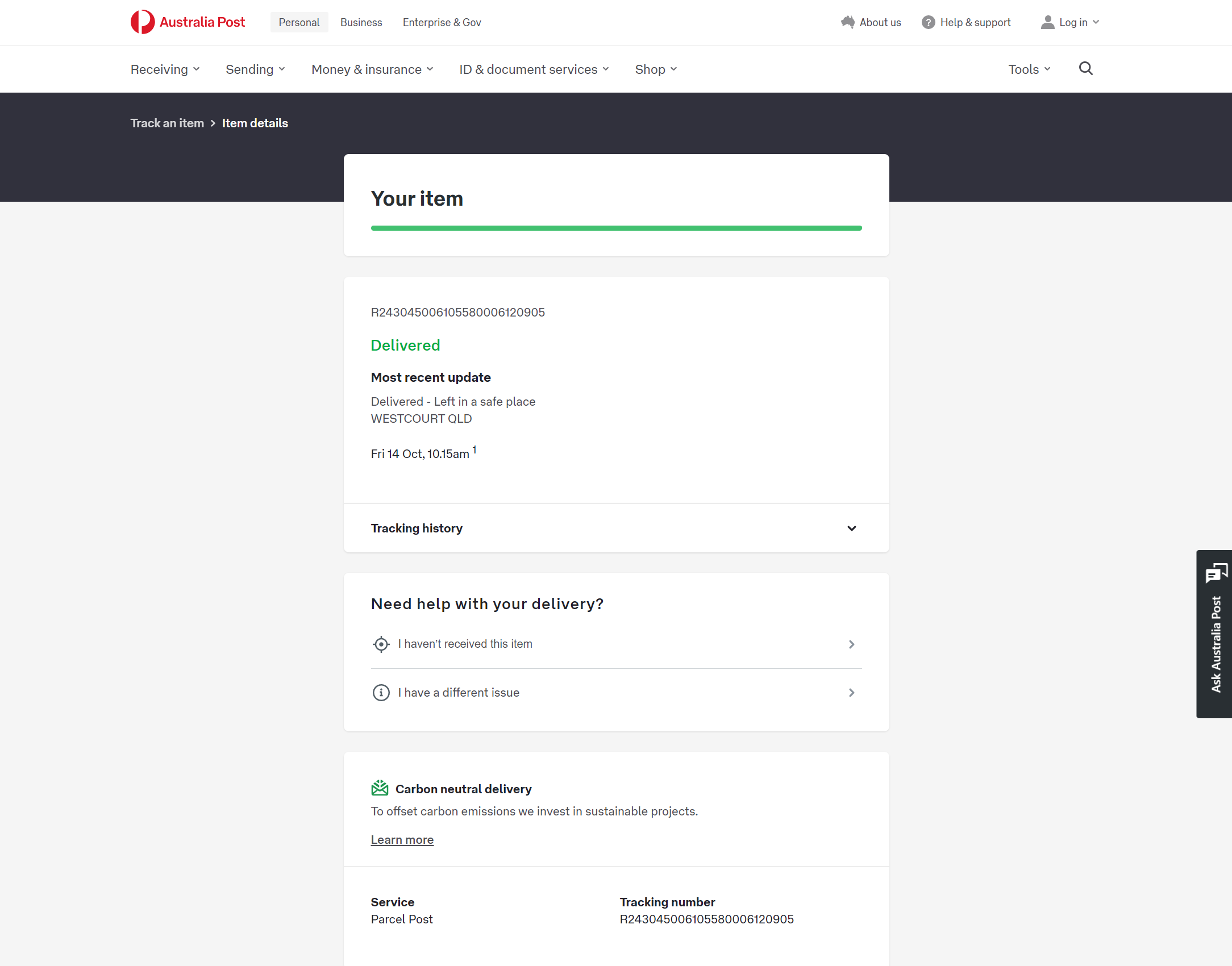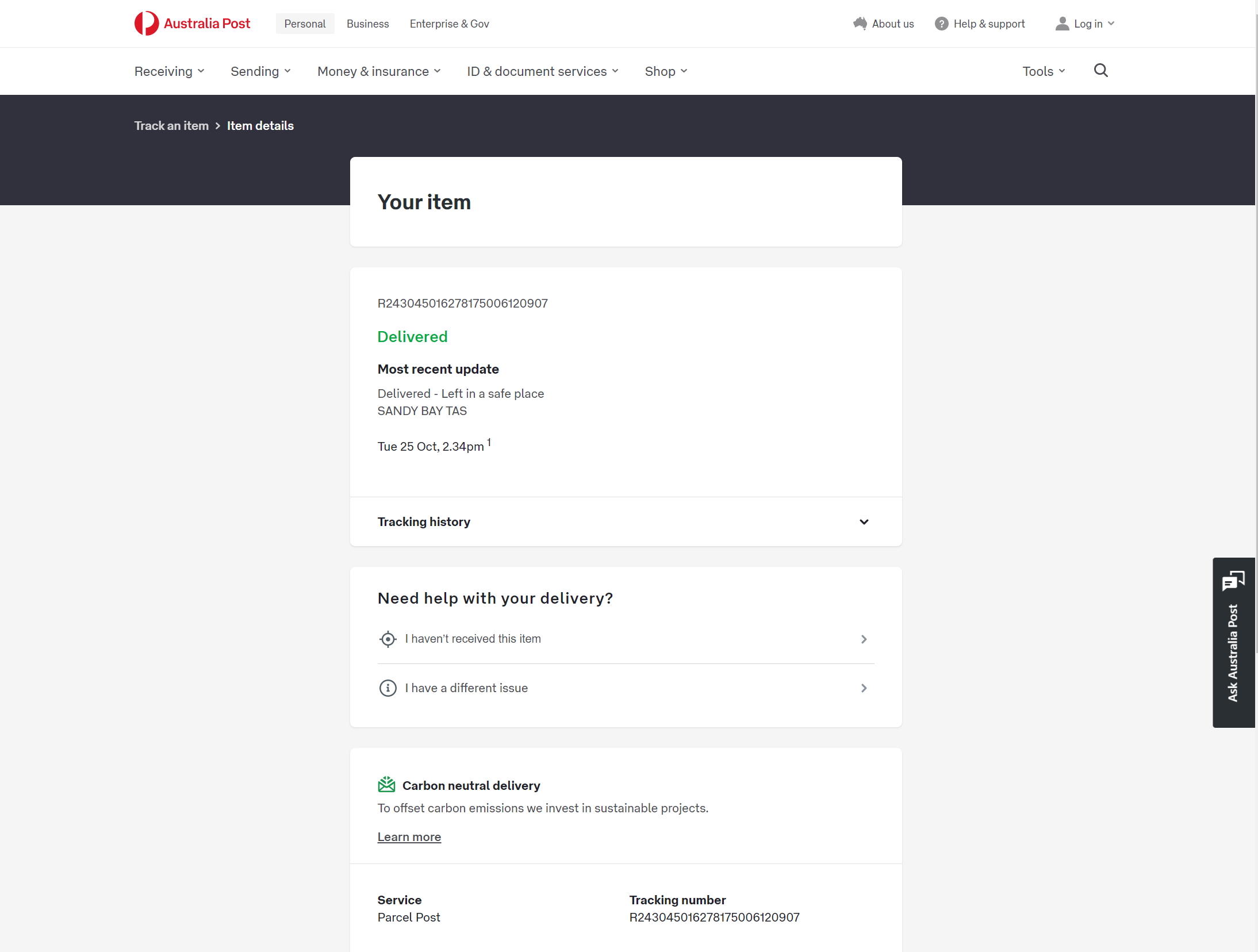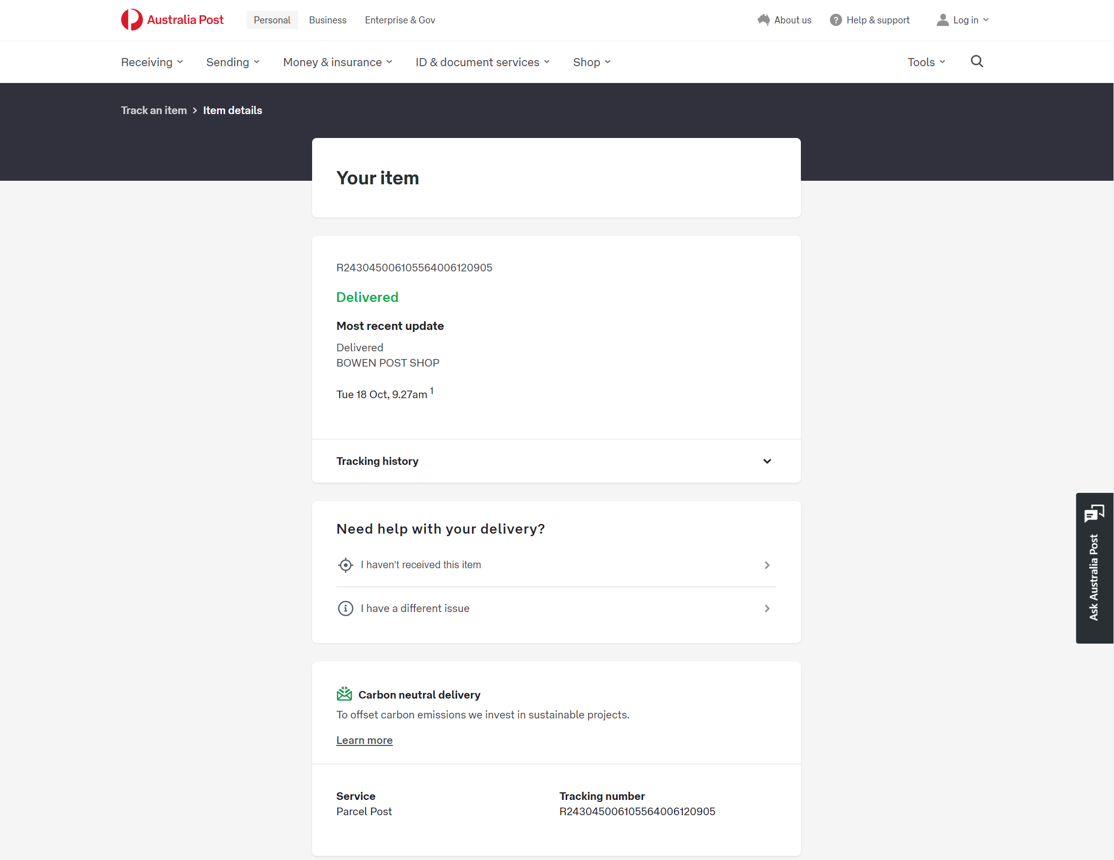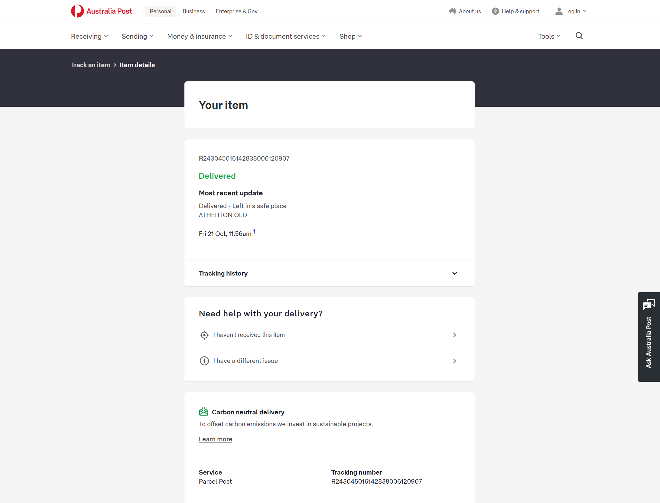 Please check your tracking number on the Australia Post website(To protect customer privacy, only part of the logistics records are shown)