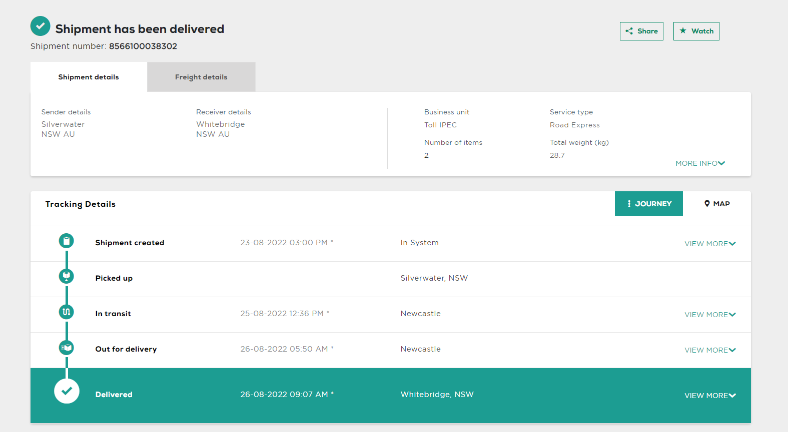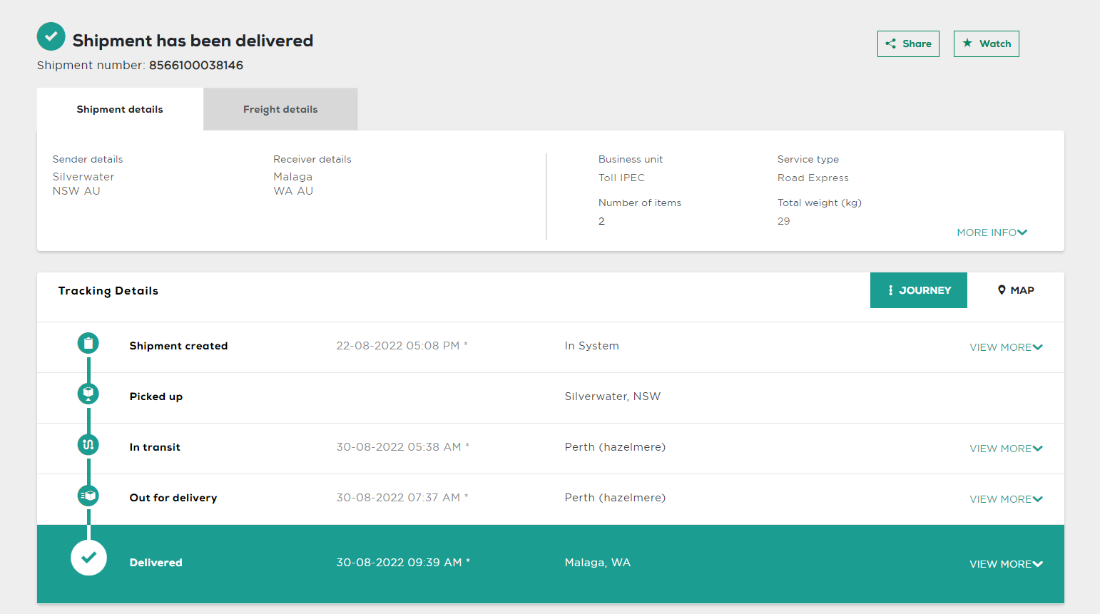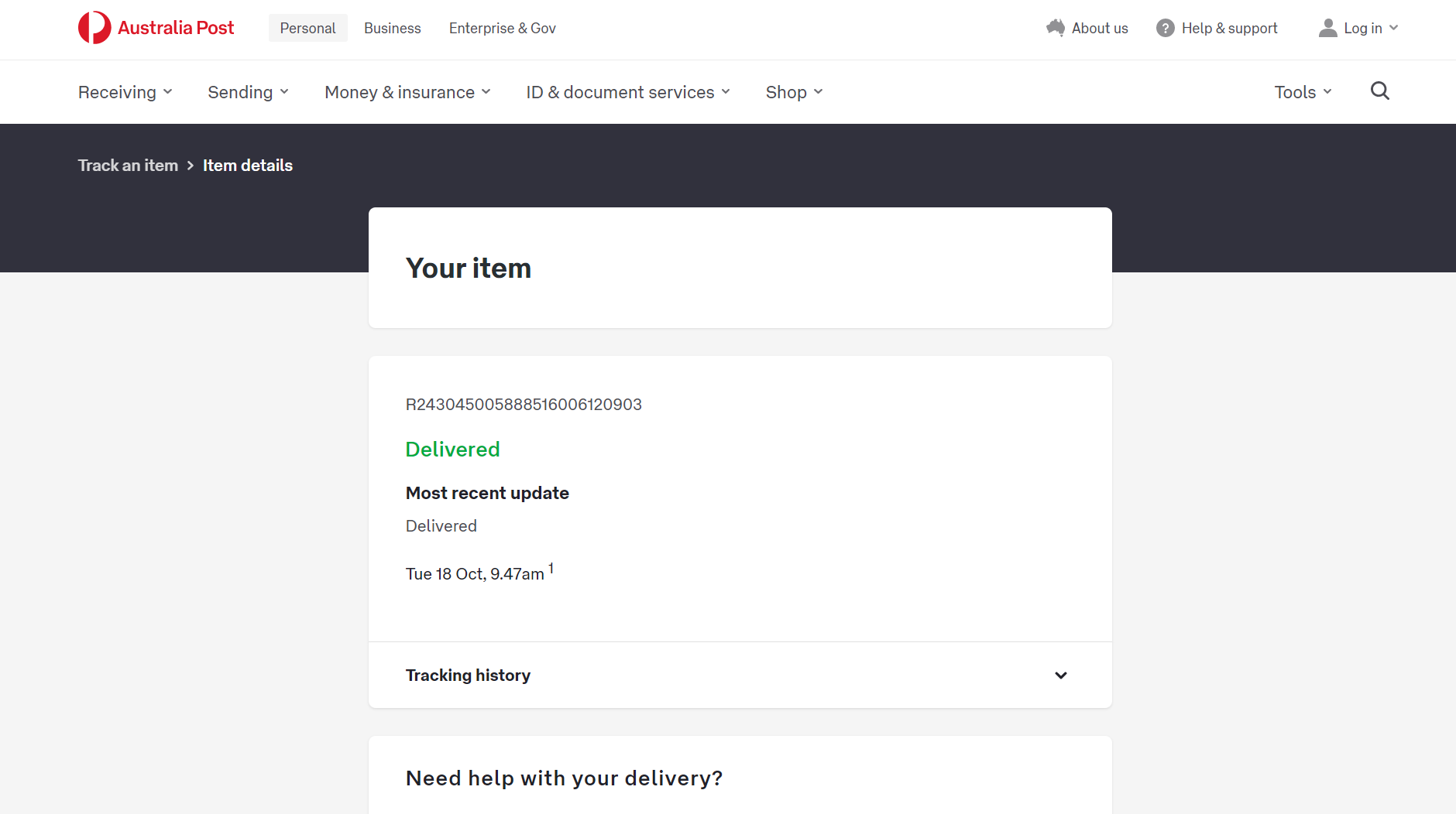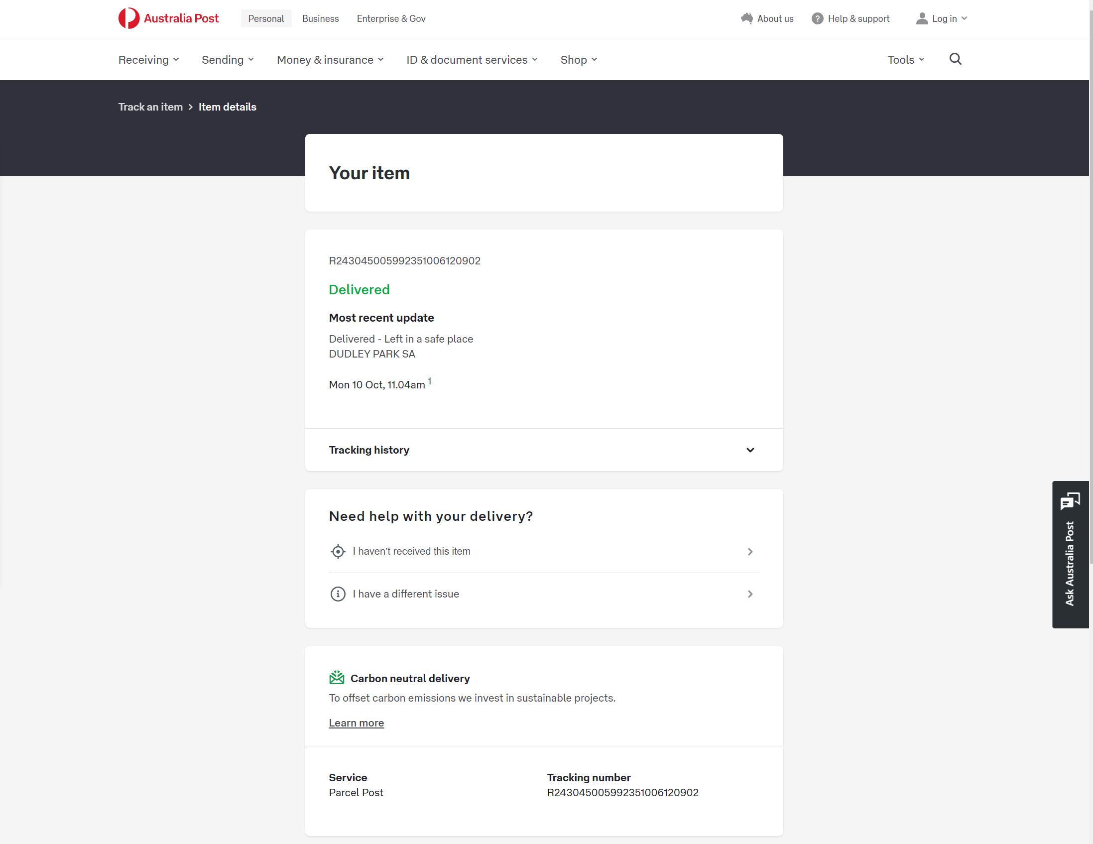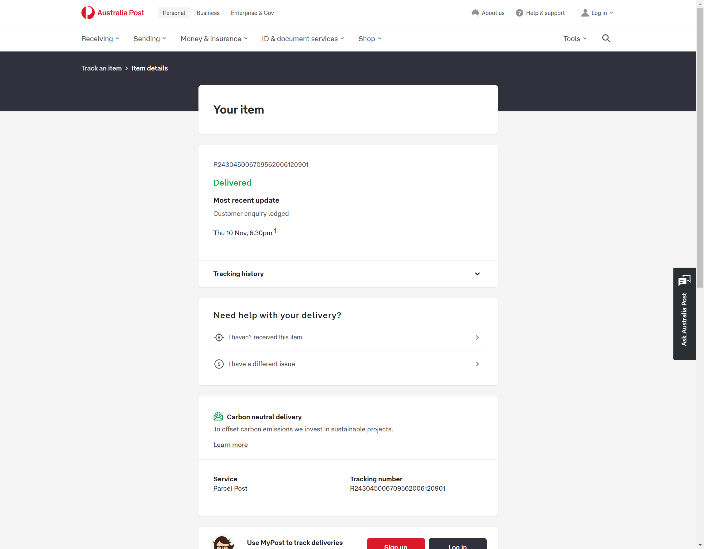 Please check your tracking number on the Australia Post website(To protect customer privacy, only part of the logistics records are shown)